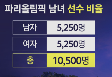 : 개막식은 7월 26일 저녁(한국시간 27일 새벽 3시) 파리의 센강변에서 진행된다.
