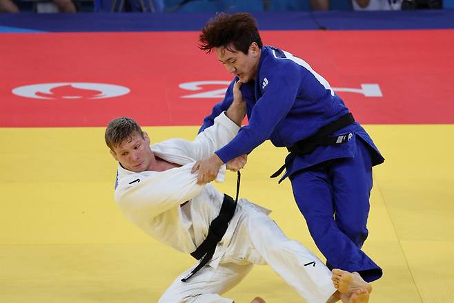 2024파리올림픽 유도남자 -81kg급에 출전한 이준환 벨기에 마티아스 카세와 동메달 결정전을 펼치고 있다. (사진 = 세계일보/올림픽사진공동취재단 )